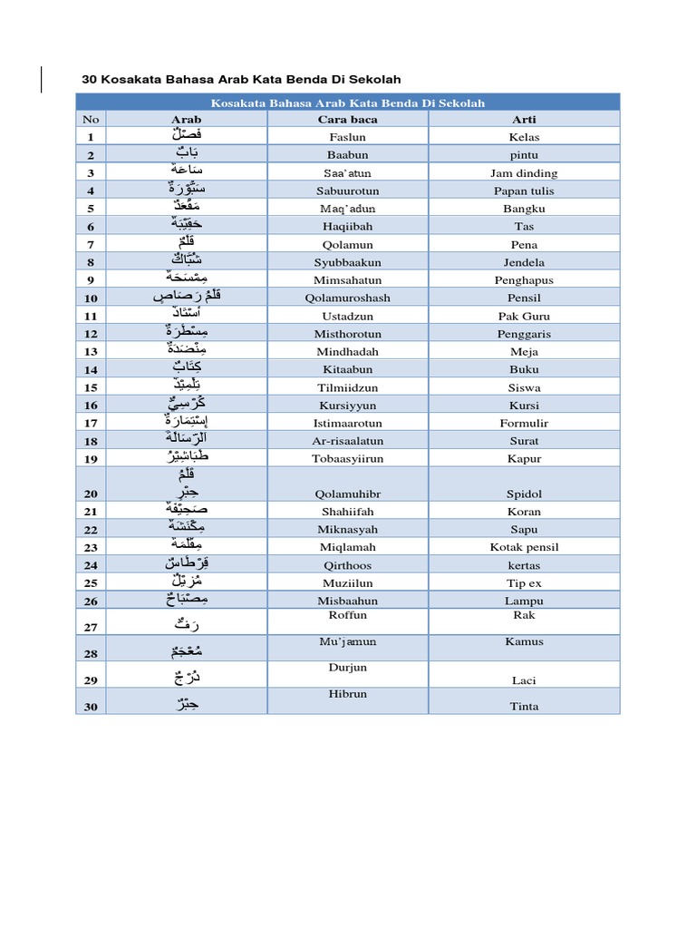 Kosakata Bahasa Arab Kata Benda Di Sekolah Lengkap