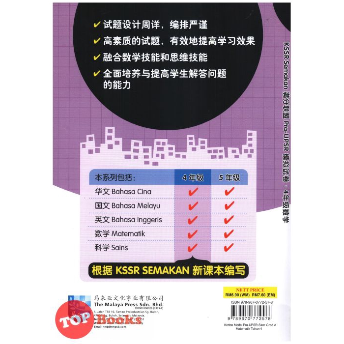 Topbooks Man Fen Lian Meng Kertas Model Pra Upsr Sjkc Matematik Tahun 4 Kssr Semakan The Malaya Press 2020 Shopee Malaysia
