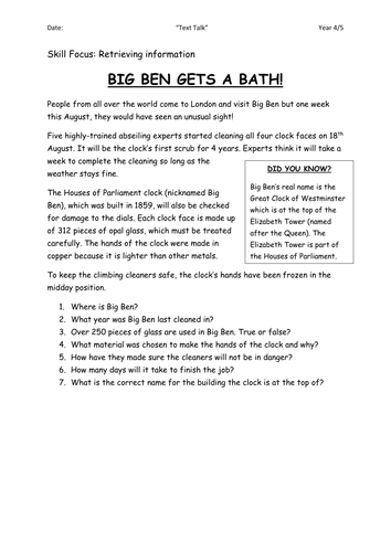 Reading Comprehension Texts And Questions Year 4 Teaching Resources