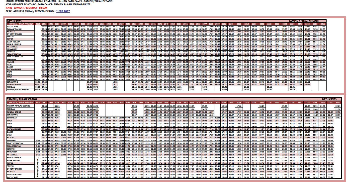 Ktm Komuter Tampin Batu Caves Route Timetable Jadual Pulau Sebang 2020