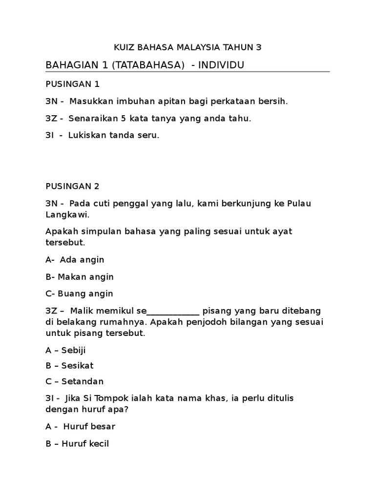 Senarai Terbesar Kuiz Bahasa Melayu Tahun 4 Yang Terhebat Dan Boleh Di Muat Turun Dengan Segera Pekeliling Terbaru Kerajaan