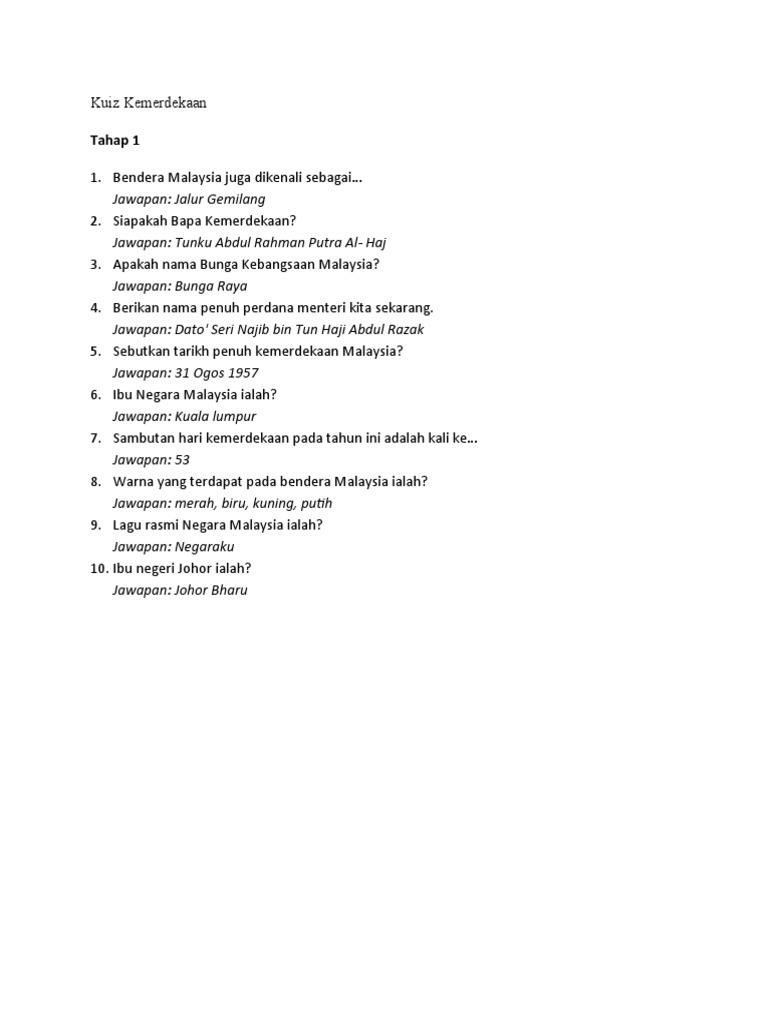 Contoh Soalan Kuiz Kemerdekaan Dan Jawapan Soalan Bf