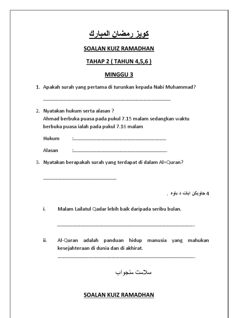 Contoh Soalan Kuiz Pendidikan Islam Sekolah Rendah Persoalan U