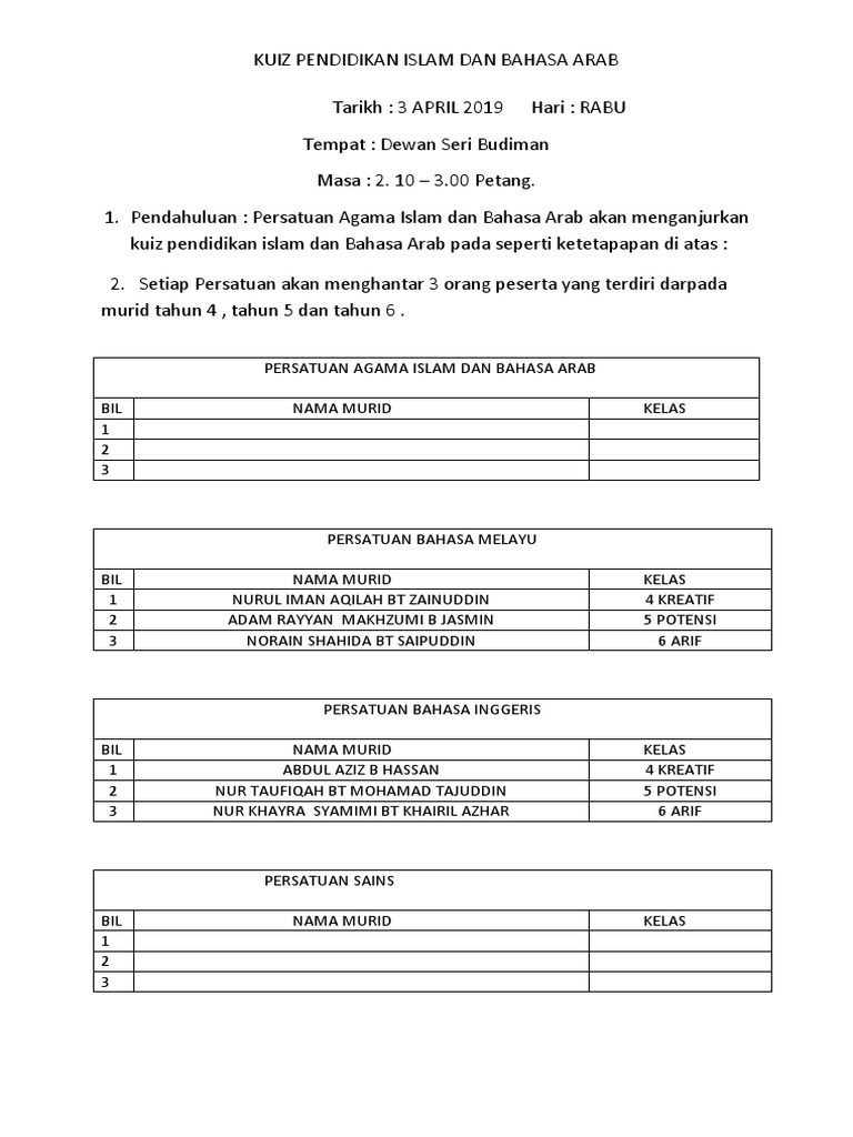 Senarai Kuiz Pendidikan Islam Tahun 6 Yang Penting Dan Boleh Di Dapati Dengan Cepat Pekeliling Terbaru Kerajaan