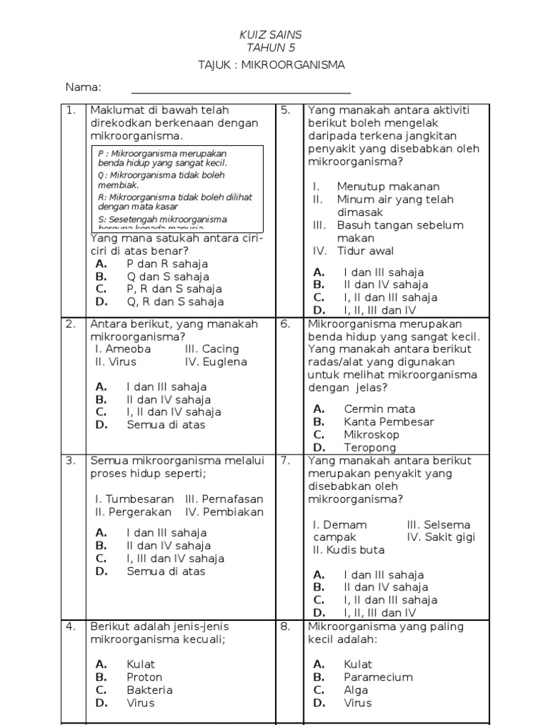 Senarai Terbesar Kuiz Sains Tahun 2 Yang Bermanfaat Dan Boleh Di Lihat Dengan Segera Pekeliling Terbaru Kerajaan