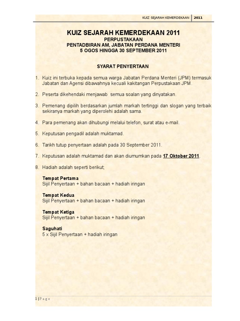 Soalan Kuiz Sejarah 2015 Doc Document