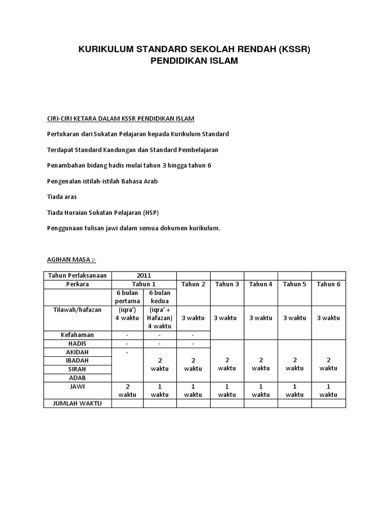 Dskp Kssr Semakan Tahun 1 Pendidikan Islam Gurubesar My