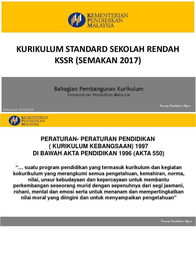 Kurikulum Standard Sekolah Rendah Kssr Semakan 2017