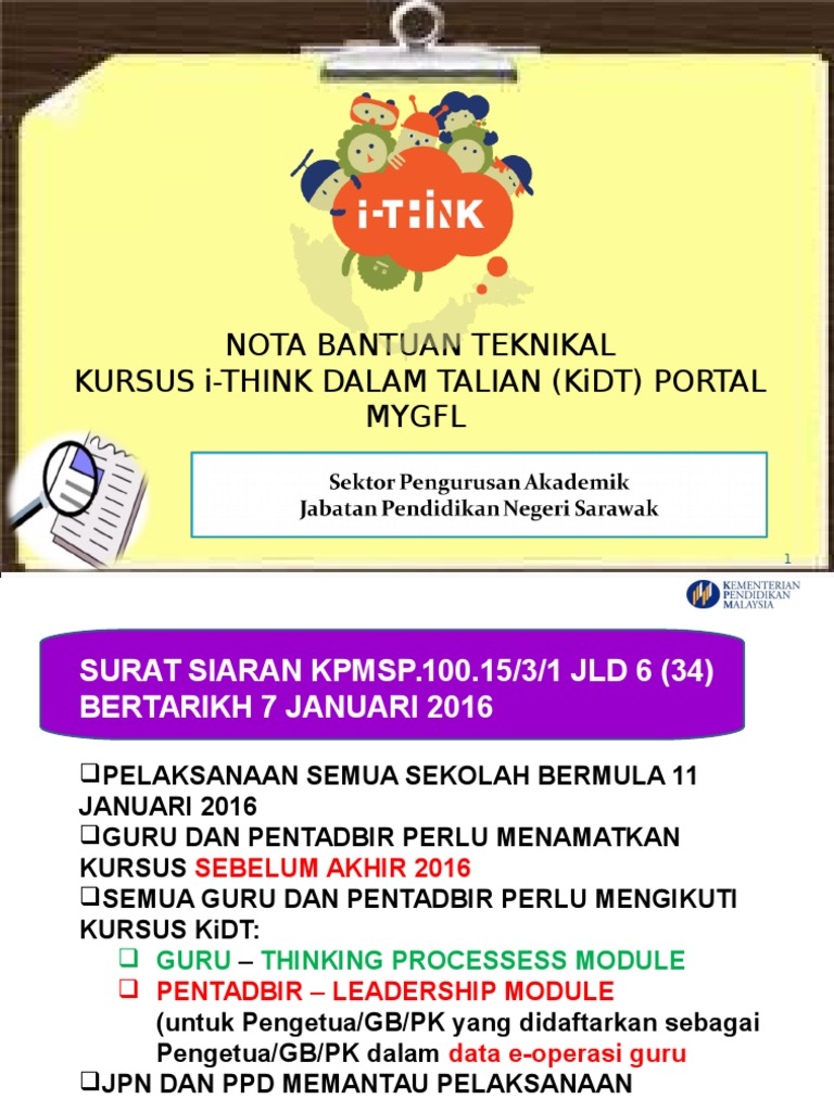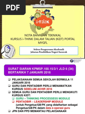 Pelaksanaan Kursus I Think Secara Dalam Talian Kidt Di Semua Sekolah Tahun 2016