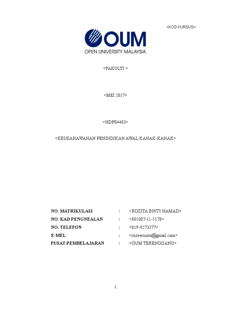 Hdps4403 Keusahawanan Pendidikan Awal Kanak Kanak Doc