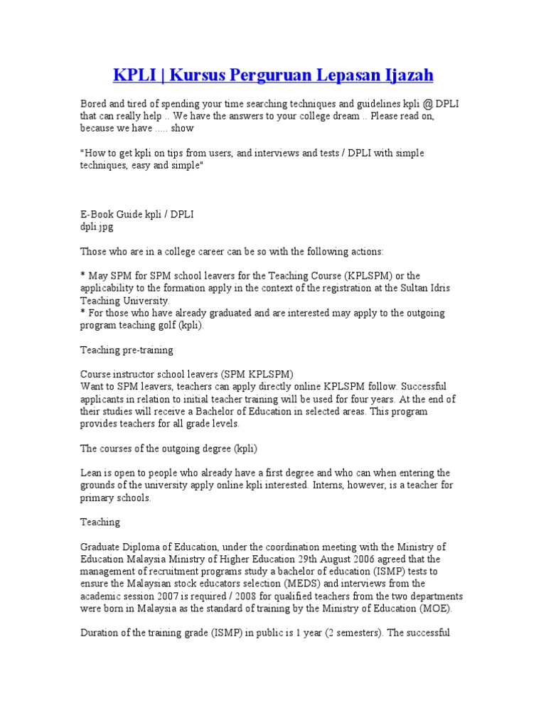 Kpli Kursus Perguruan Lepasan Ijazah By Acronymsandslang Com