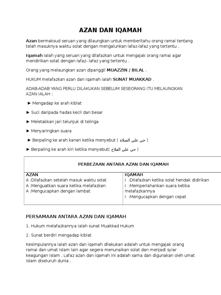 Azan Dan Iqamah Pages 1 12 Text Version Anyflip