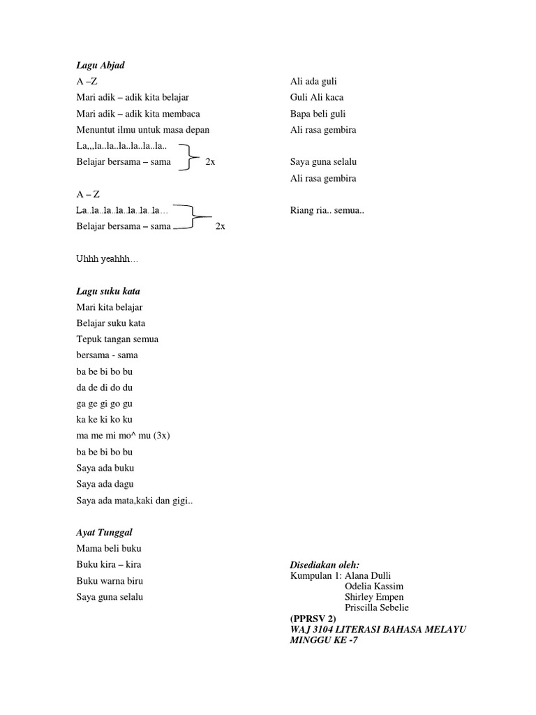 Lagu Abc Bahasa Melayu