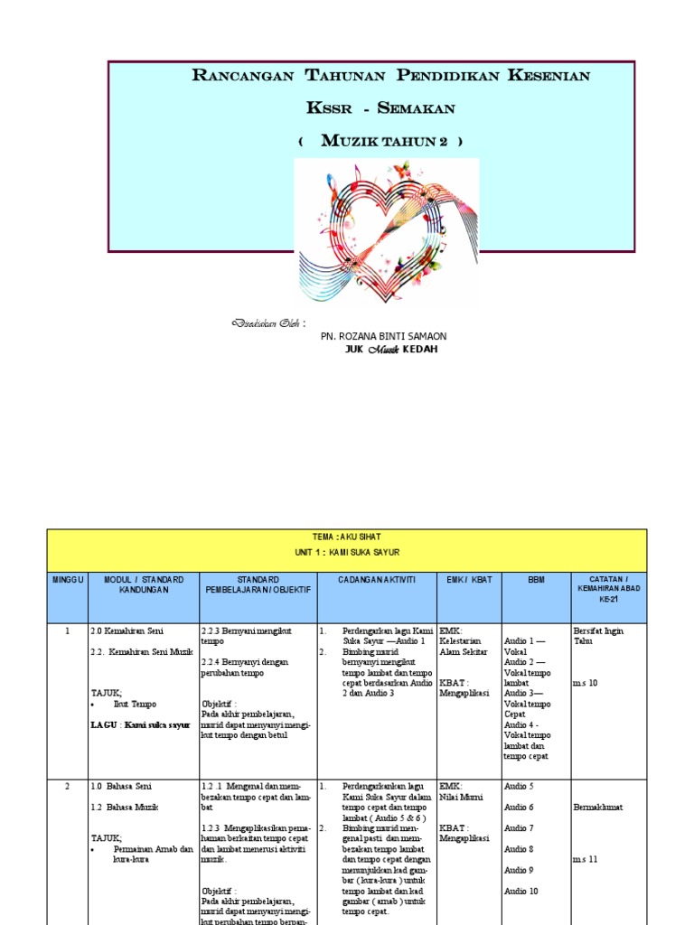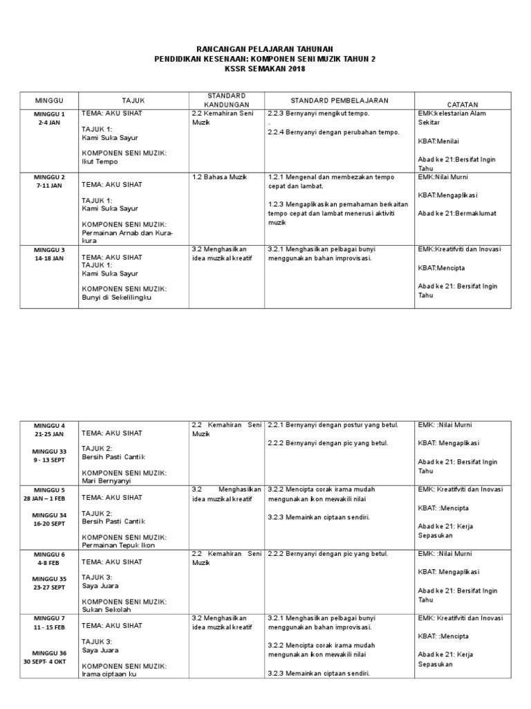 Rpt Pendidikan Kesenian Komponen Seni Muzik Tahun 2 By Cg Zia Doc