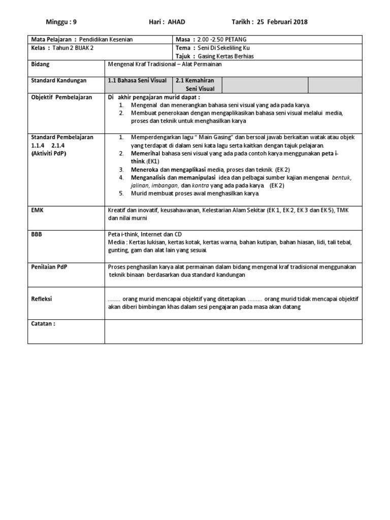 Pendidikan Kesenian Tahun 2 Sk Teks Kssr Semakan