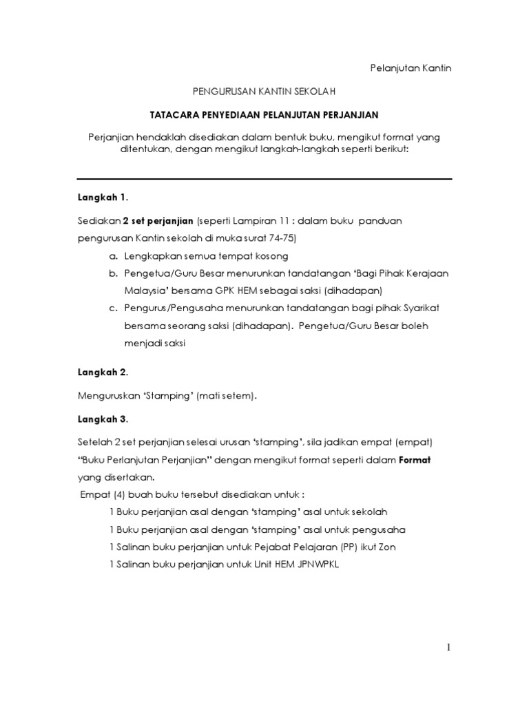 Perjanjian Penyewaan Dan Pengurusan Kantin Sekolah Pdf Free Download
