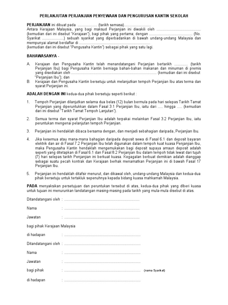 Perlanjutan Perjanjian Penyewaan Dan Pengurusan Kantin Sekolah Autosaved Docx Document