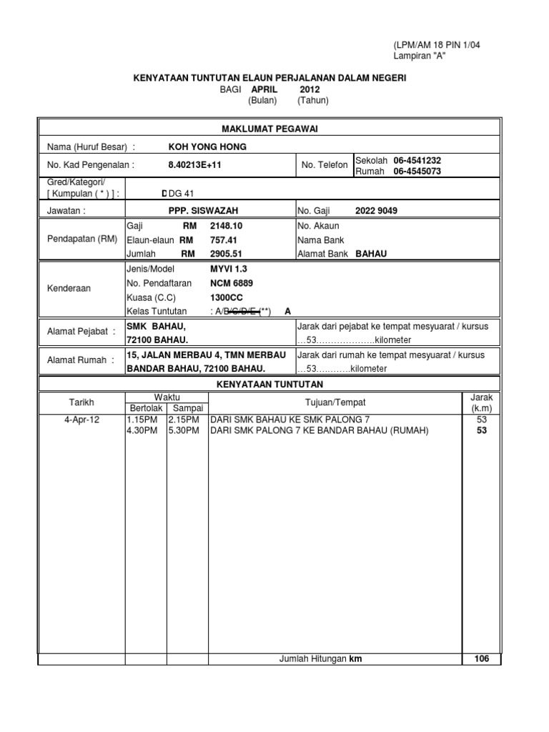 Doc Borang Tuntutan Elaun Perjalanan Dalam Negeri Samuel Louis Academia Edu