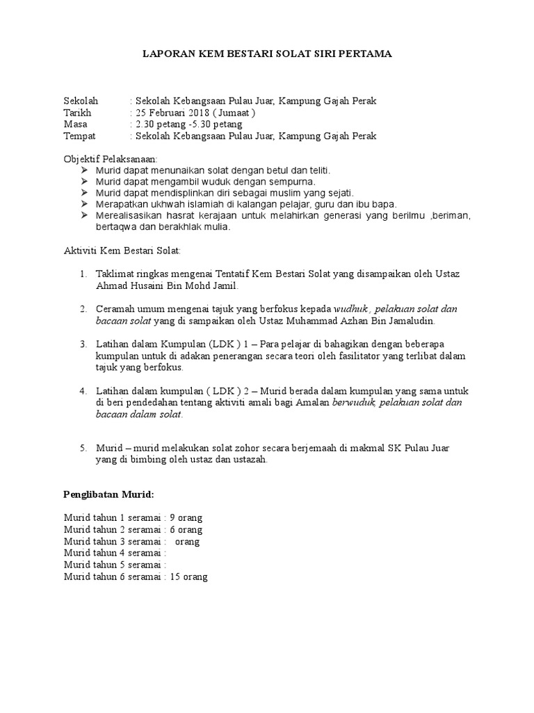Laporan Program Kem Bestari Solat Kali 1 Pages 1 9 Text Version Anyflip