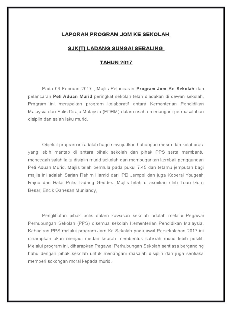 Laporan Program Jom Ke Sekolah Contoh
