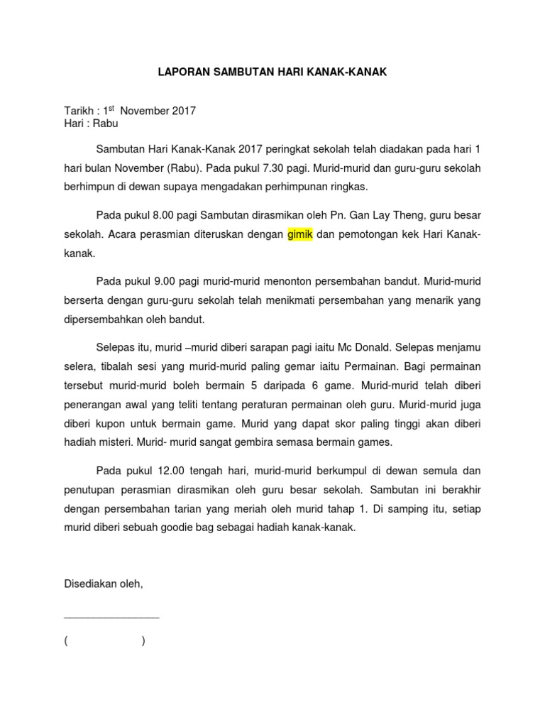 Contoh Karangan Laporan Sambutan Hari Guru Peringkat Sekolah Rasmi F