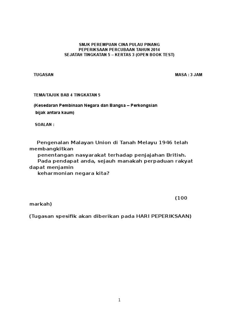 Contoh Soalan Esei Malayan Union Soalan Ae