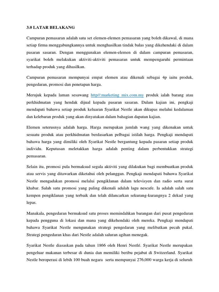 Doc Contoh Kerja Kursus Pengajian Perniagaan Tingkatan 6 Penggal 3 2015 Stpm Campuran Pemasaran Syarikat Nestle Malaysia Hanna Farhana Academia Edu
