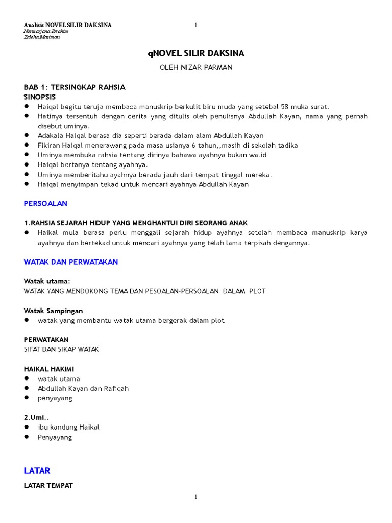 Download Nota Novel Silir Daksina Yang Hebat Untuk Para Murid Download Pekeliling Terbaru Kerajaan