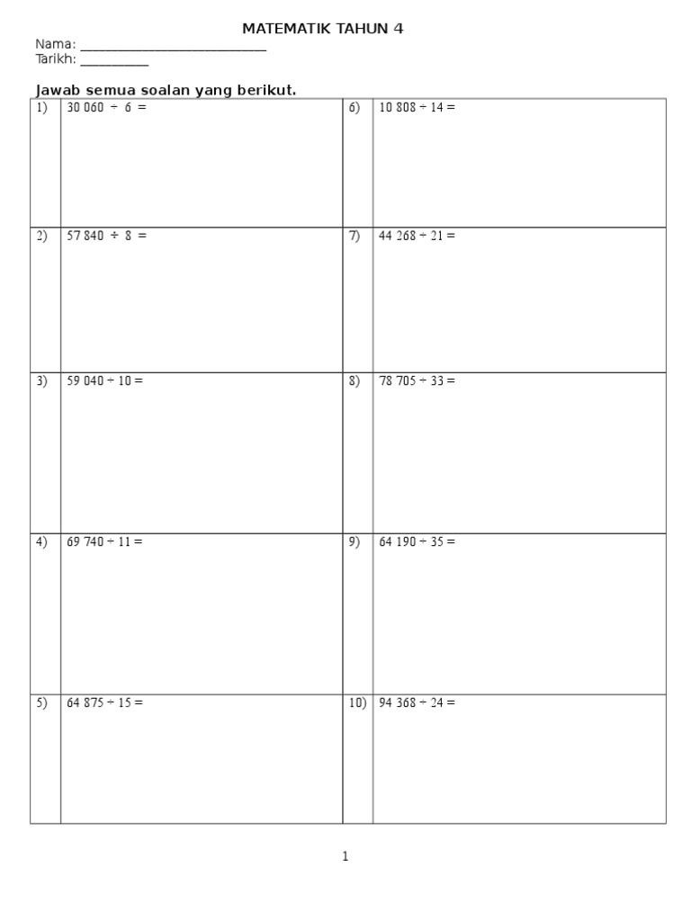 Latihan Bahagi Matematik Kssr Tahun 3 3rd Grade Math Worksheets 3rd Grade Math First Grade Sight Words