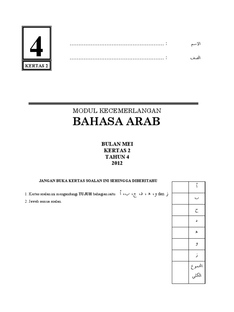Soalan Ppt Bahasa Arab Kertas 2 Tahun 4 2012