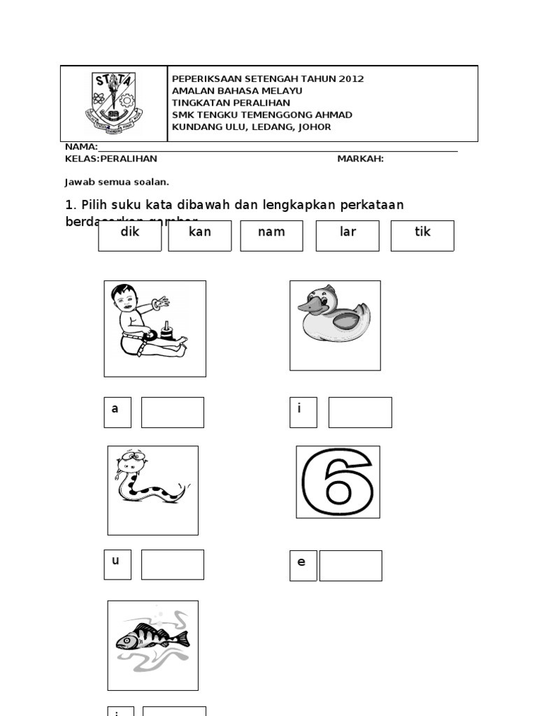 Lembaran Kerja Soalan Bahasa Melayu Prasekolah