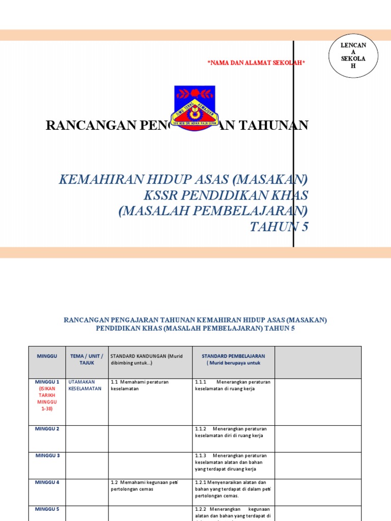 Rpt Kemahiran Hidup Masakan Ppki Tahun 6 Docx Rancangan Tahunan Kssr Kemahiran Hidup Asas Komponen Masakan Tahun 6 Pendidikan Khas Masalah Course Hero