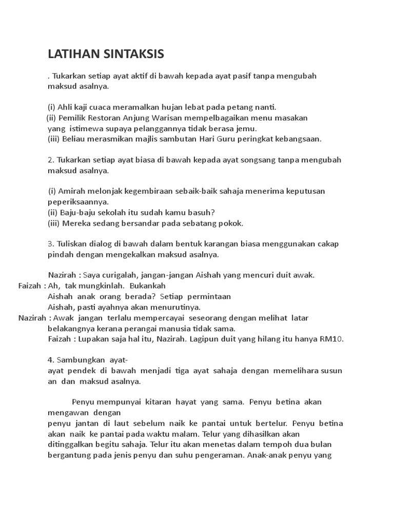 Latihan Sintaksis Bm