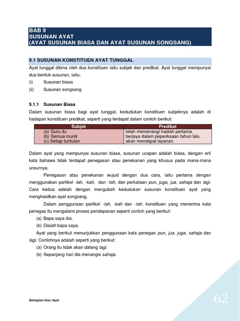 Cemerlang Bahasa Melayu Tatabahasa Ayat Biasa Ayat Songsang