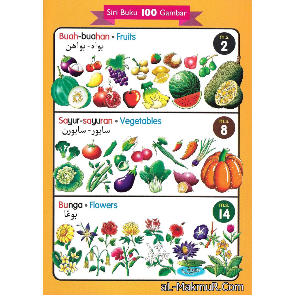 Myb Buku Siri Buku 100 Gambar Buah Buahan Sayuran Dan Bunga Bm Bi Jawi Sri Saujana Shopee Malaysia
