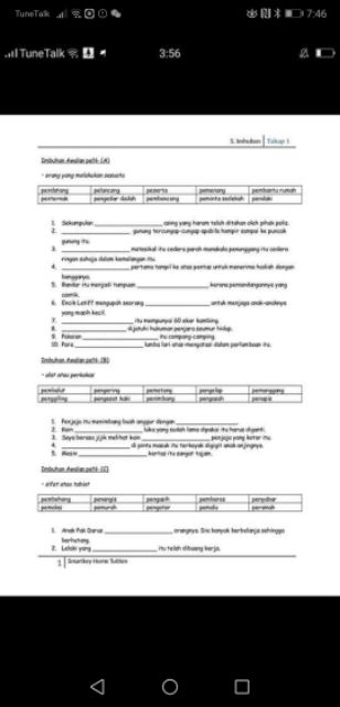 Latihan Bahasa Melayu Imbuhan Pinjaman Geng Sekolah