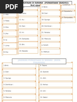 Latihan Jawi Tahun 4 Perkataan Tradisi