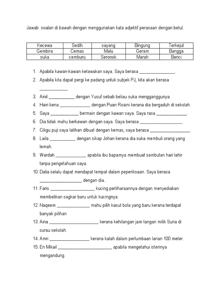 Isi Tempat Kosong Dengan Kata Adjektif Yang Sesuai