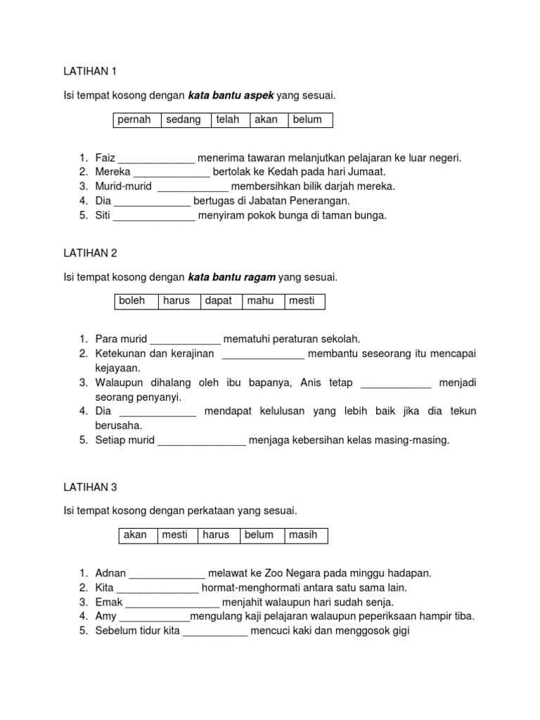 Latihan Tatabahasa Kata Bantu Sumber Pendidikan