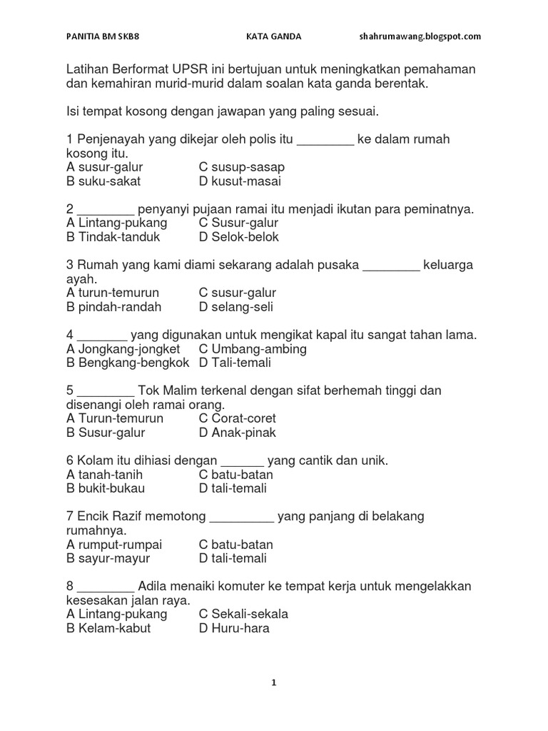 Kata Ganda Dalam Bahasa Melayu Lessons Tes Teach