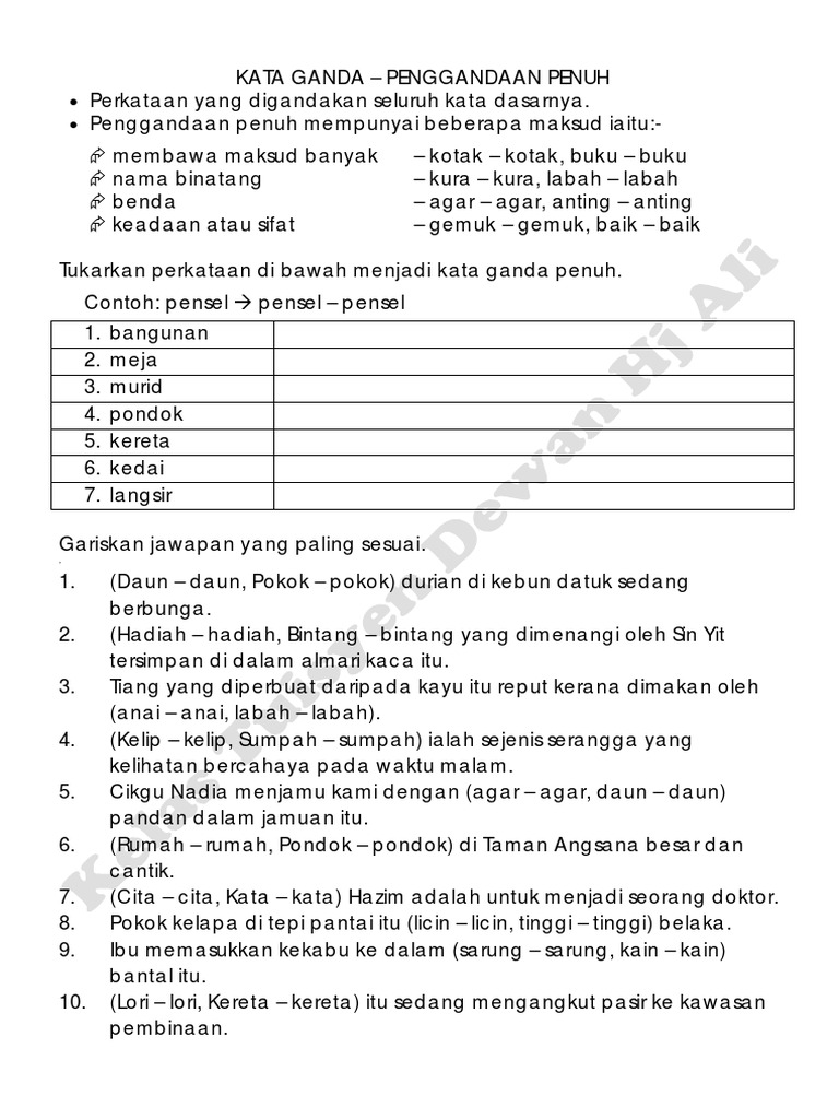 Latihan Tatabahasa Kata Ganda Penuh