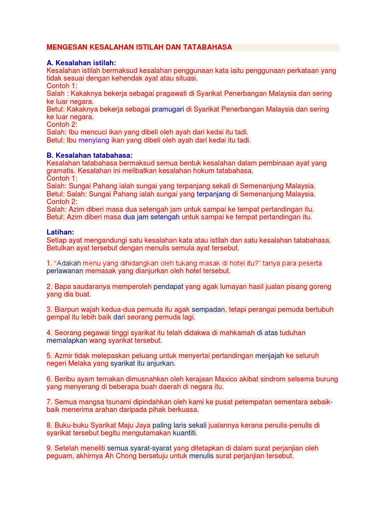 B5 Latihan Kesalahan Kata Istilah Dan Tatabahasa