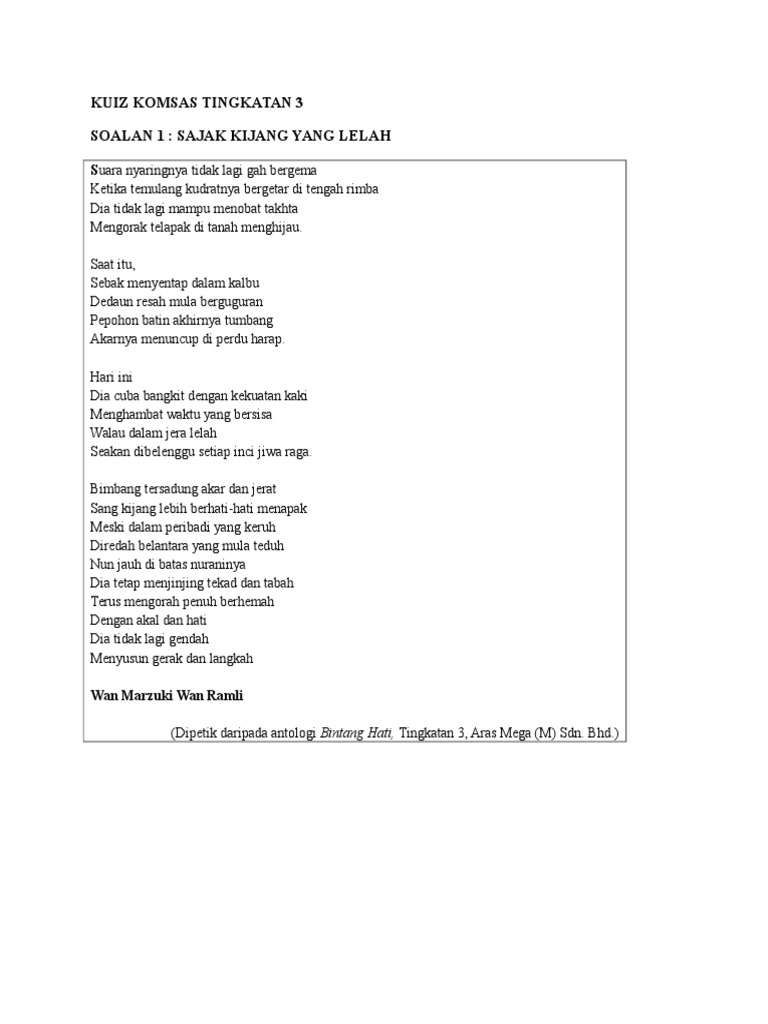 Contoh Soalan Komsas Tingkatan 3 Pt3 Viral Blog K