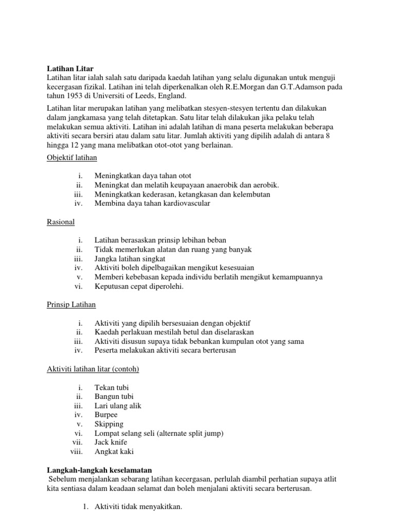Latihan Litar Docx Amali Individu Merancang Dan Melaksanakan Satu Kaedah Latihan Untuk Satu Sesi Dalam Fasa Persediaan Latihan Litar Latihan Litar Course Hero