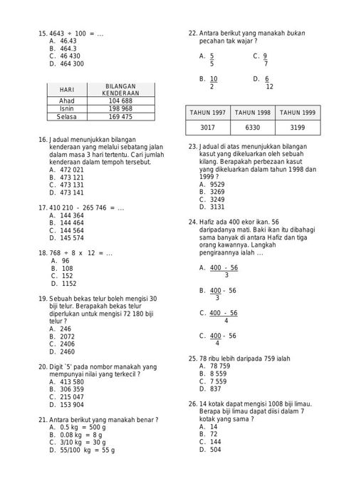 Latihan Asas Matematik Thn 4 Bahasa Tamil