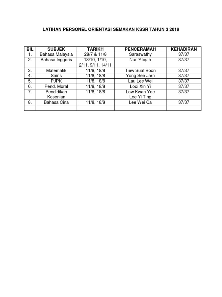Latihan Personel Orientasi Semakan Kssr Tahun 3 2019