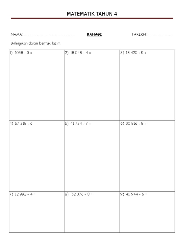 Matematik Tahun 4 Bahagi Cute766