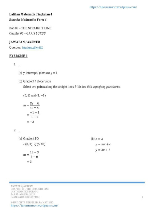 Tutormansor Wordpress Com Latihan Matematik Tingkatan 4 05 Strai By Adamnoor Flipsnack