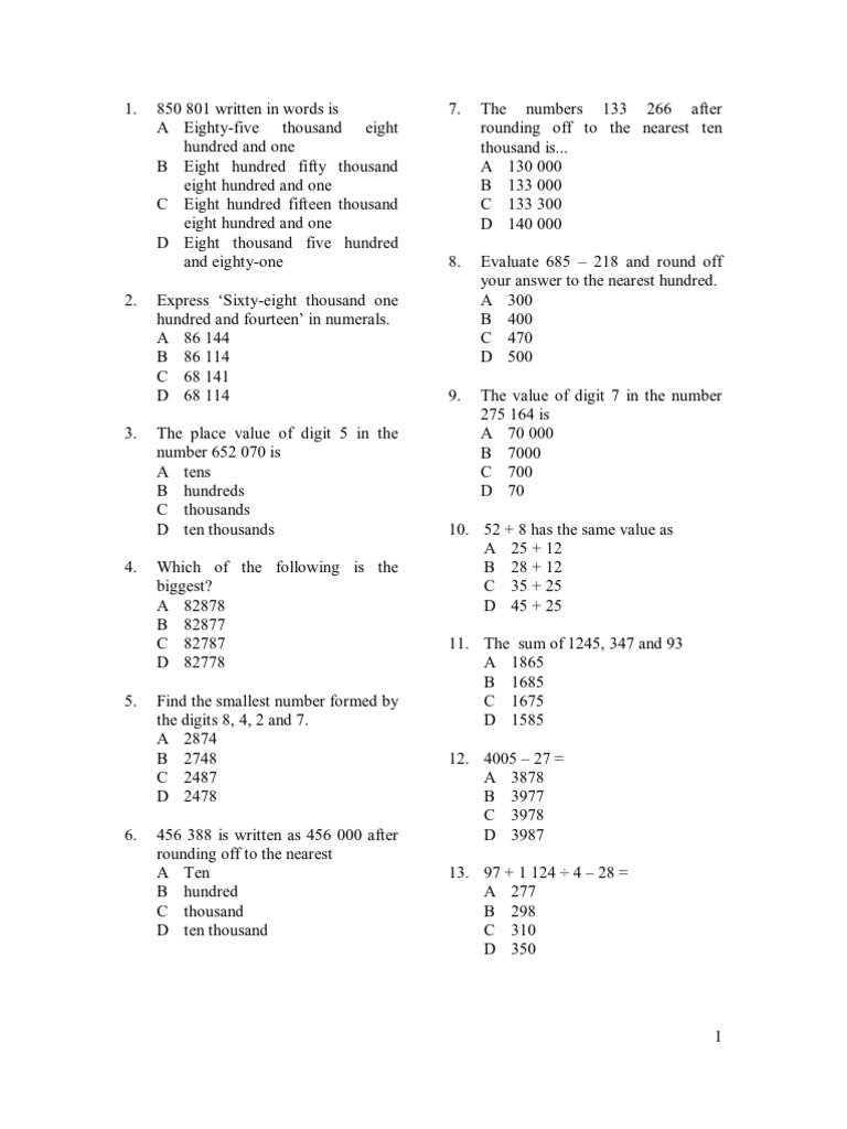 Matematik Soalan Kertas 1