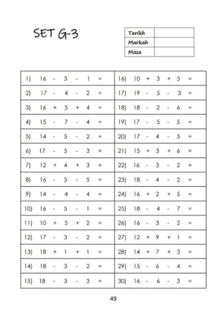 Latihan Operasi Tambah Tahun 2
